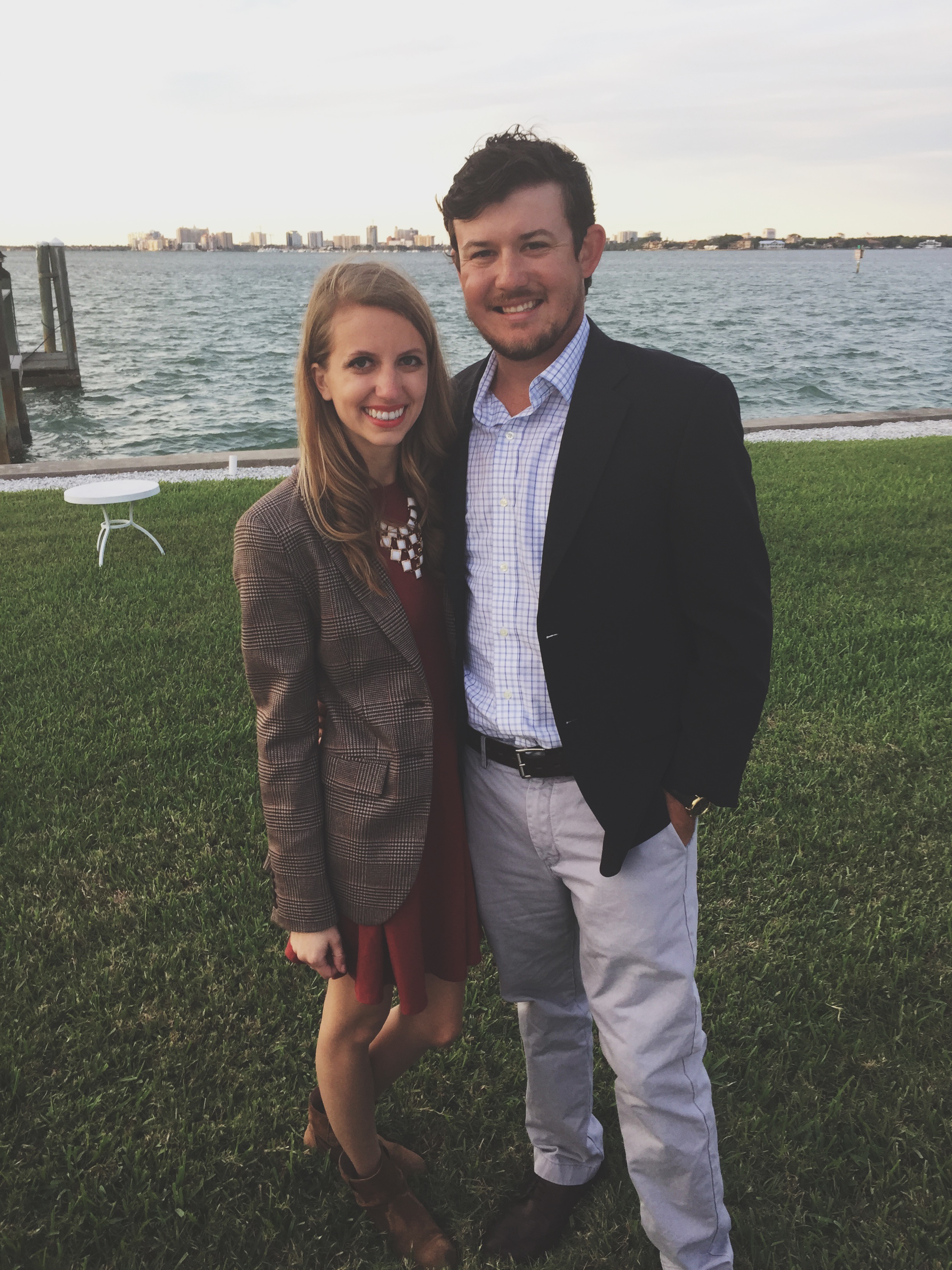 Jake and I at wedding number 1 (of 2) at a house on the bay on a freakishly cold and windy evening for FL in April. We made the best of it and had a great time! (even if we did spend a lot of time around the heaters).